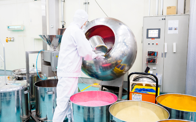 製菓業界に選ばれ続ける スプレーチョコ 専用工場